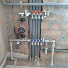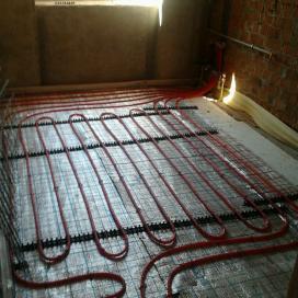 - прокладка труб фирмы Tebo к котлу Roda 24квт и к коллектору теплого пола на 4 выхода с насосом;