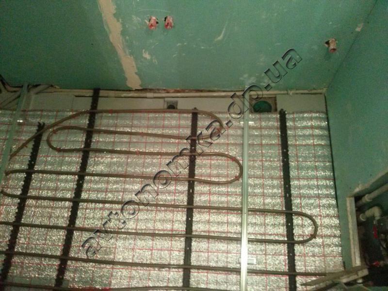Установочные работы, связанные с отоплением, также включали монтаж теплого пола в санузле, сделано горячее, холодное водоснабжения и установлены сантех элементы в частном доме: умывальник, ванна, унитаз.