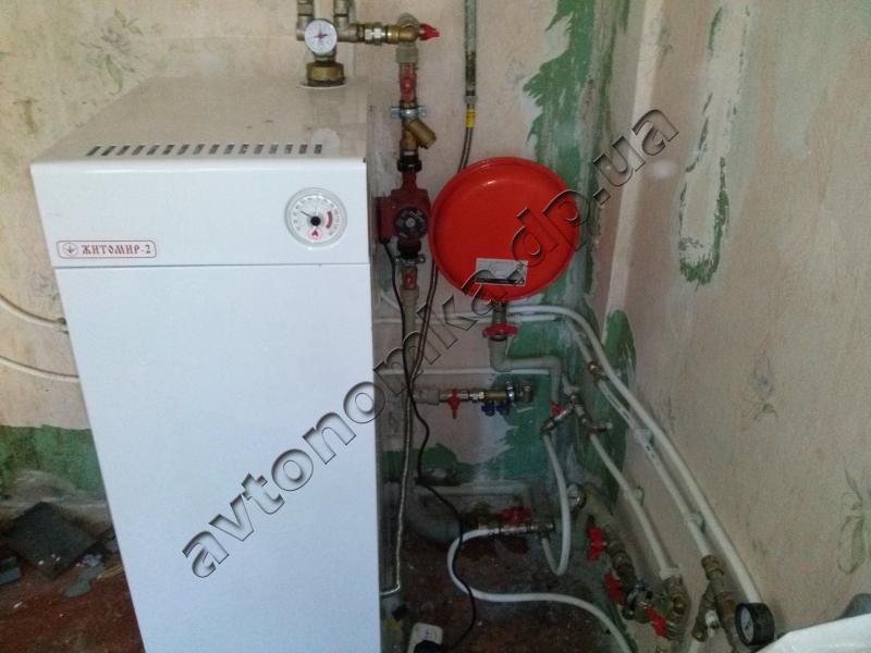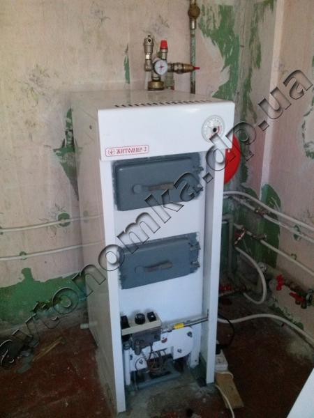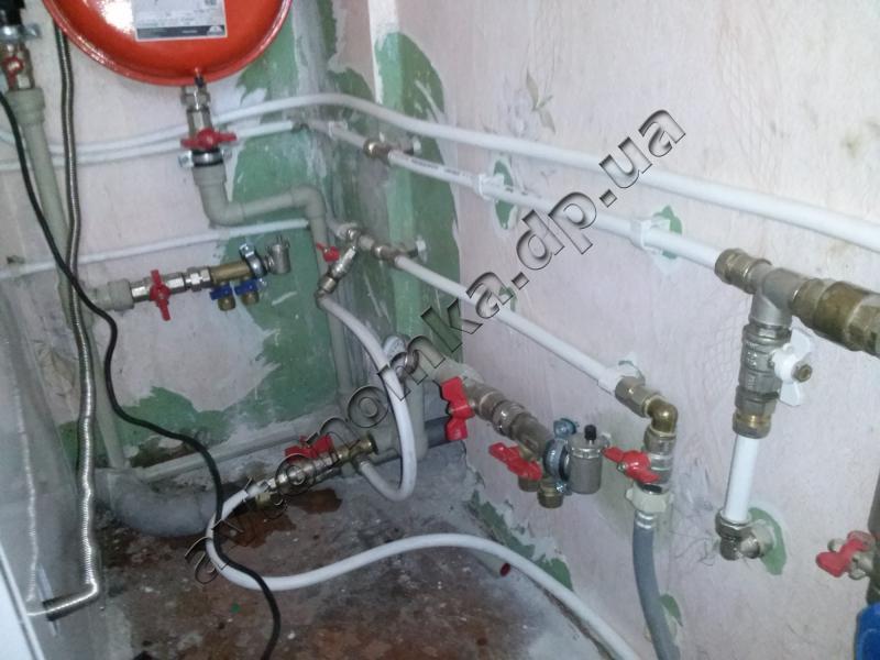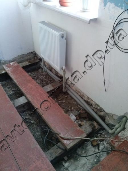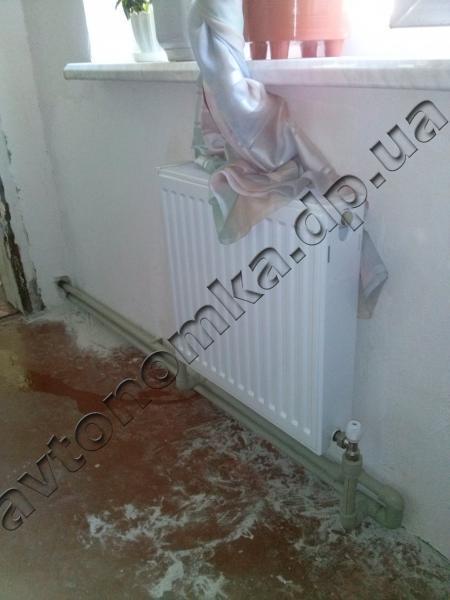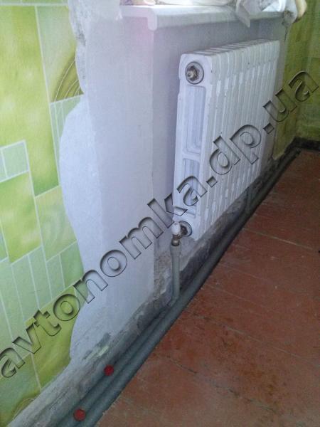 В рамках реконструкции всей системы автономного отопления в пос. Ксеньевка (г. Днепропетровск) был проведен монтаж системы отопления. Выполнен демонтаж старых труб и радиаторов. Установлены новые радиаторы стального типа производитель "Hidros". Подключен одноконтурный напольный комбинированный котел газ/дрова/угол марки "Житомир-2" 14 квт. Сделана реконструкция разводки отопления (установлена двухтрубная), с использованием труб Ekoplastik Ф25 и запорной арматурой Icma. Произведен монтаж системы теплого пола в коридоре и санузле. Также сделано горячее и холодное водоснабжения.