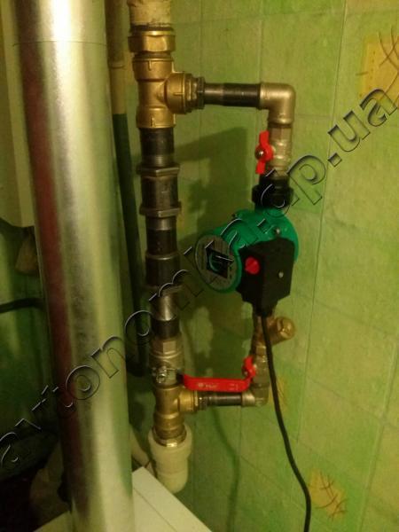 - Осуществить установку циркуляционного насоса на обогревательный элемент.