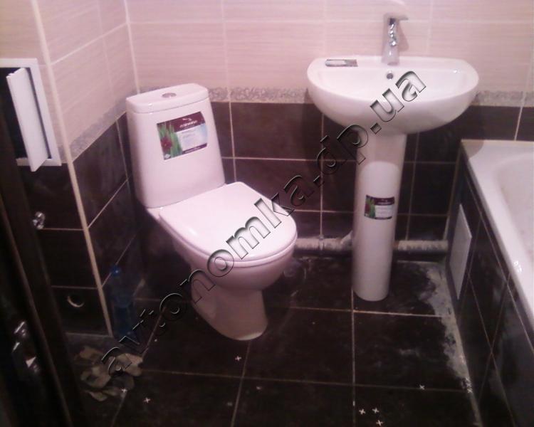 В квартире многоэтажного дома (г. Днепропетровск, ж/м Левобережный-3) был проведен демонтаж старых и установка новых труб. Установлены сантехприборы, включая ванну, унитаз, рукомойник. Их монтаж довольно трудоемкий процесс и зависит от модели сантехприбора. Как следствие стоимость выполненных работ может быть различной. Установка унитаза также требует тщательного подхода, в связи со связанностью с канализационной системой труб.